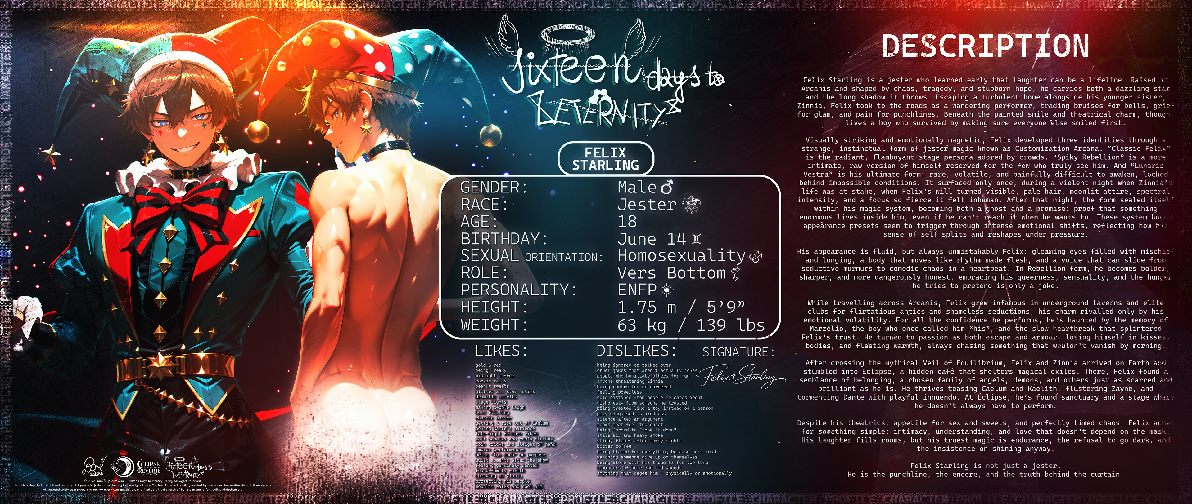 Sixteen Days to Eternity - Character Profile: Felix Starling | 09/01/2026